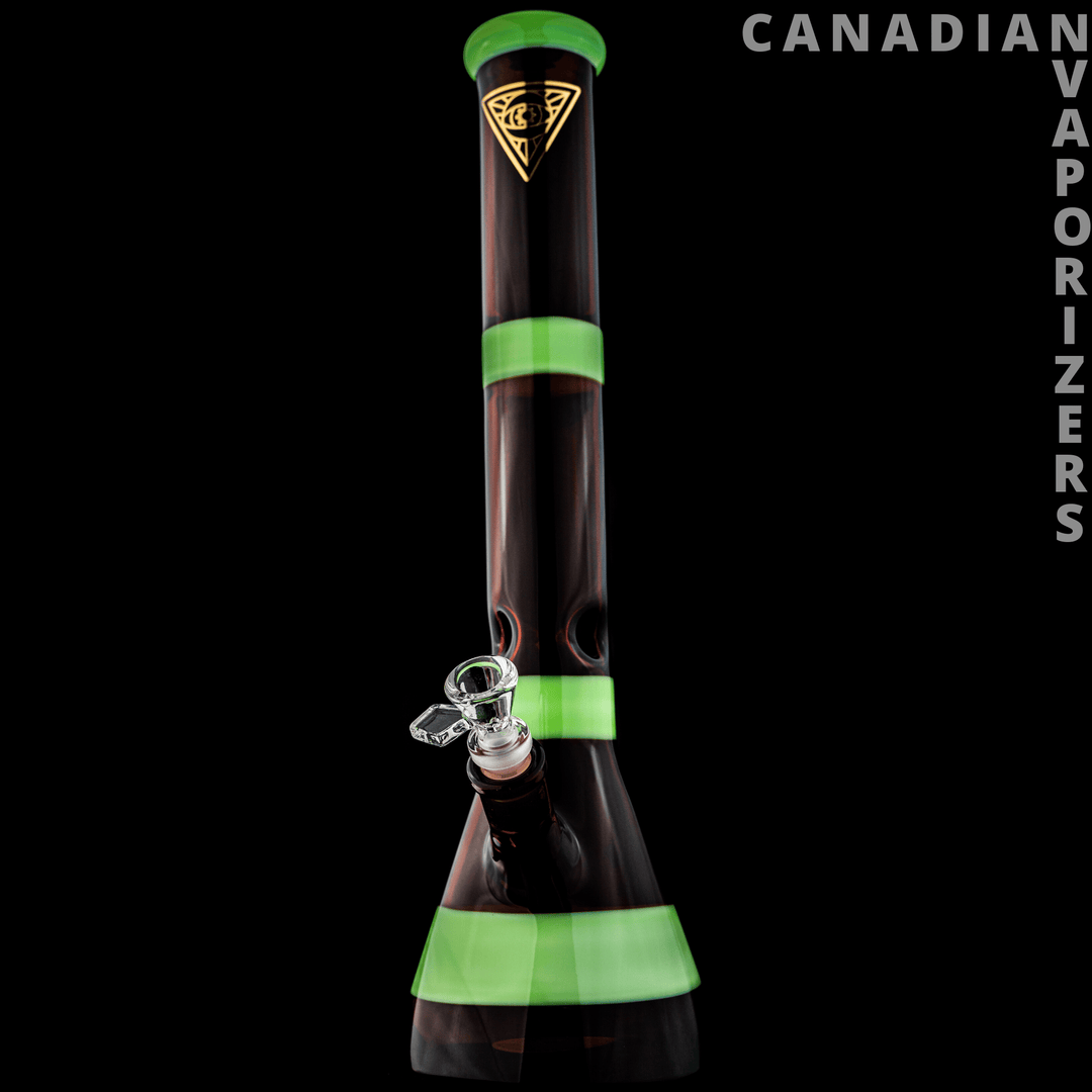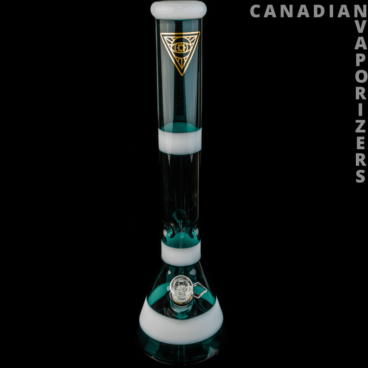 Welcome the latest entrant to the Red Eye Tek collection, the Red Eye Tek Color-Blocked Beaker Tube. Standing at an impressive 17 inches, this piece boasts a segmented, colorful design, complete with an ice pinch. It is carefully made from 100% borosilicate glass, providing superior durability for extended enjoyment.